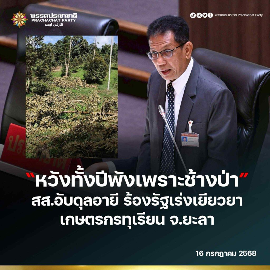 “ทุเรียนที่คาดหวังจะสร้างรายได้ในปีนี้ถูกช้างป่าทำลายจนหมด ขอให้หน่วยงานเร่งเยียวยาและป้องกันปัญหาซ้ำซากโดยเร็วที่สุด” สส.อับดุลอายีกล่าว