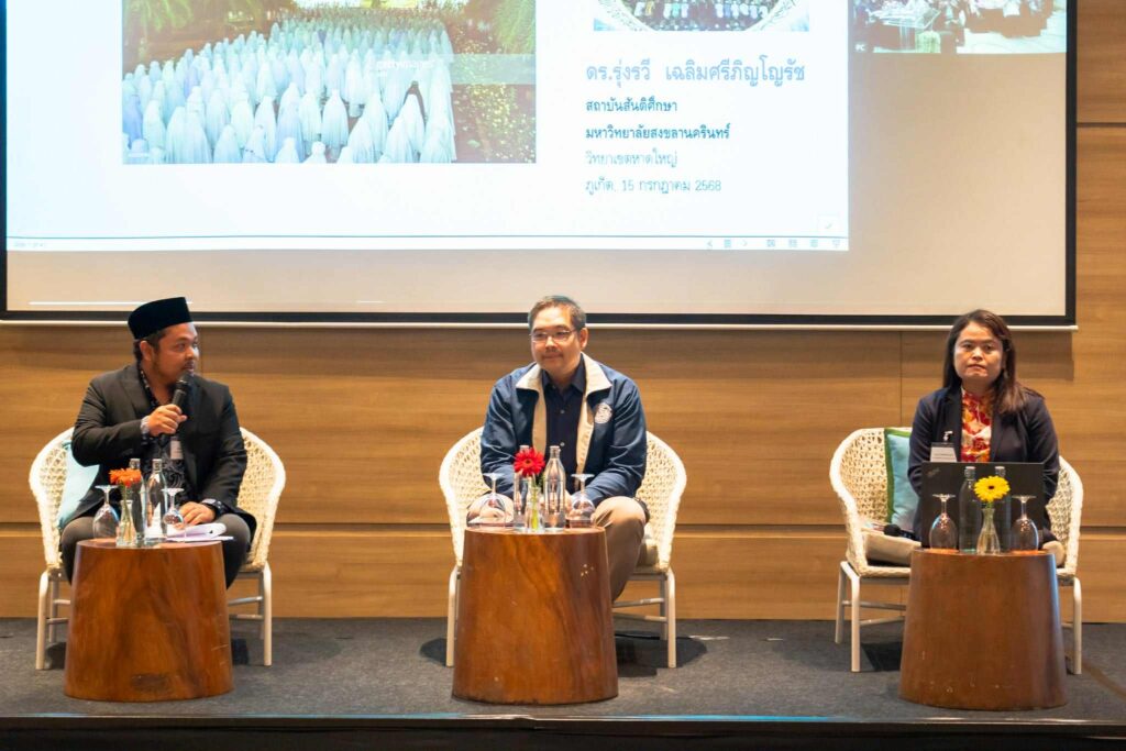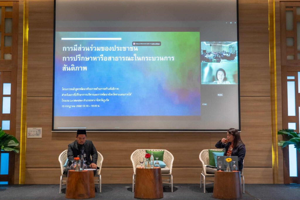 เมื่อวันที่ 14 – 16 กรกฎาคม 2568 ที่ผ่านมา สถาบันสันติศึกษา มหาวิทยาลัยสงขลานครินทร์ ร่วมกับ สำนักงานสภาความมั่นคงแห่งชาติ (สมช.) และศูนย์อำนวยการบริหารจังหวัดชายแดนภาคใต้ (ศอ.บต.) ได้จัดโครงการการอบรมเชิงปฏิบัติการ “หลักสูตรพัฒนาศักยภาพด้านการสร้างสันติภาพสำหรับสมาชิกสภาที่ปรึกษาการบริหารและการพัฒนาจังหวัดชายแดนภาคใต้” ณ โรงแรม Le Meridien Phuket Mai Khao Beach Resort ต.ไม้ขาว อ.ถลาง จ.ภูเก็ต