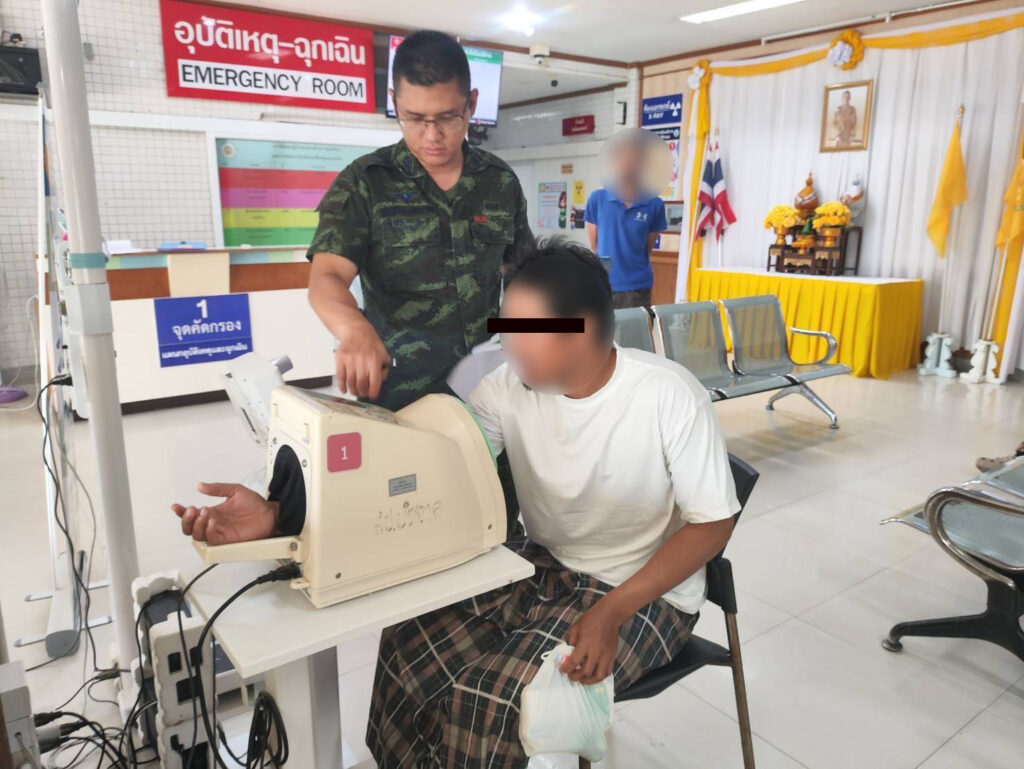 จากการตรวจร่างกายเบื้องต้นที่โรงพยาบาลค่ายอิงคยุทธบริหาร พบเพียงรอยถลอกบริเวณหัวเข่าและจุดอื่นเล็กน้อย สอดคล้องกับคำชี้แจงของเจ้าหน้าที่ว่าบาดแผลดังกล่าวเกิดจากการล้มขณะหลบหนี จากนั้นได้ส่งตัวไปยังศูนย์ซักถาม หน่วยเฉพาะกิจกรมทหารพรานที่ 43 เพื่อดำเนินการตามกระบวนการ