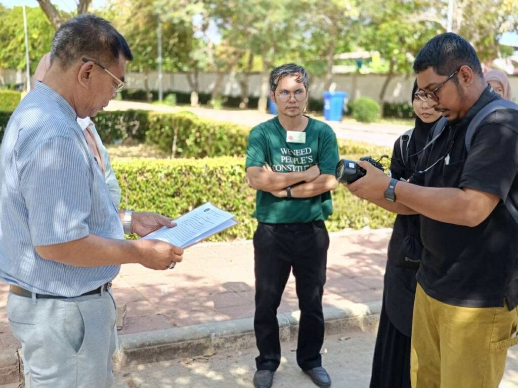 วันนี้ 5 สิงหาคม 2568 เวลา 09.30 น. เครือข่ายผู้ได้รับผลกระทบจากกฎหมายพิเศษ JASAD พร้อมด้วยครอบครัวของนายนรินทย์ (สงวนนามสกุล) เดินทางไปยังศาลจังหวัดปัตตานี เพื่อยื่นหนังสือต่อประธานคณะกรรมาธิการการกฎหมาย การยุติธรรม และสิทธิมนุษยชน นายกมลศักดิ์ ลีวาเมาะ กรรมาธิการฯ เป็นผู้รับเรื่อง