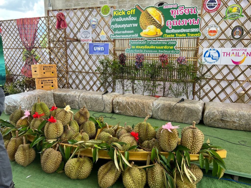 นราธิวาสเป็นหนึ่งในพื้นที่ที่มีศักยภาพสูงในการผลิตทุเรียน โดยเฉพาะทุเรียนพื้นเมืองและทุเรียนพันธุ์ดีต่างๆ ที่มีรสชาติเป็นเอกลักษณ์และคุณภาพเป็นที่ยอมรับ