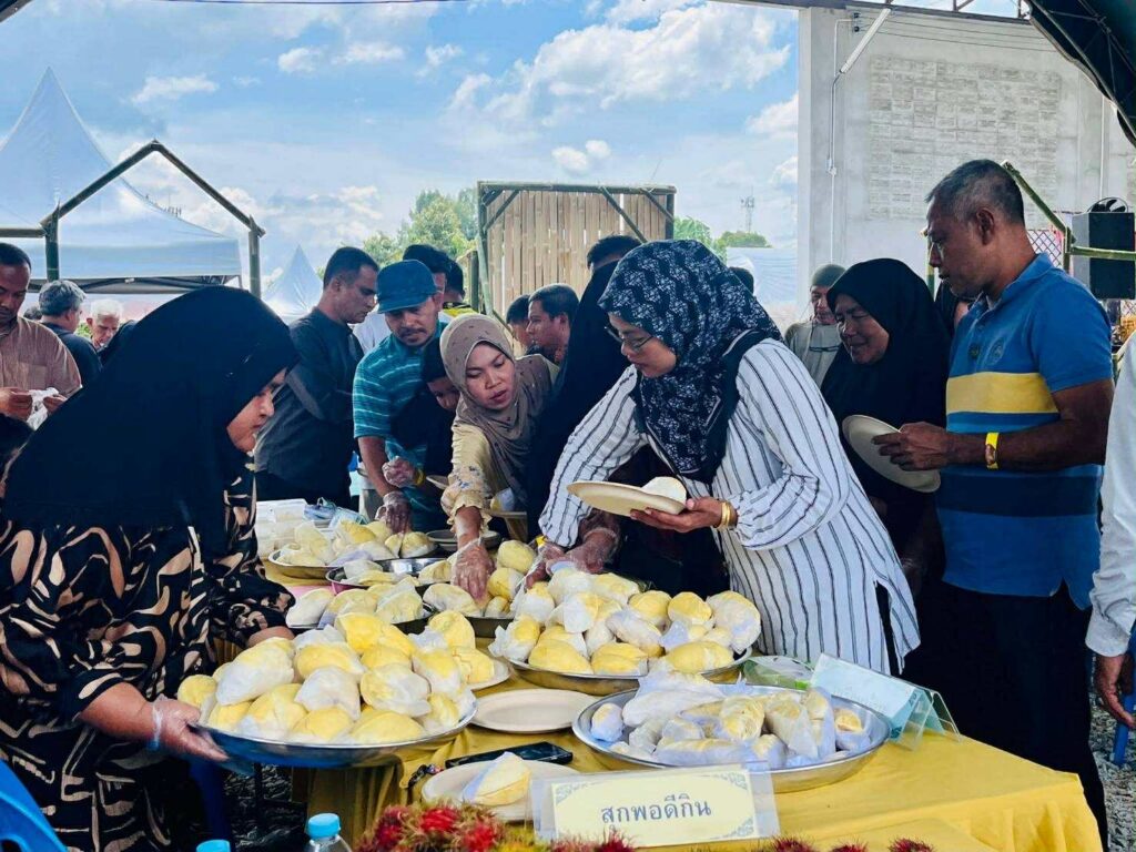 #งานนี้ไม่ใช่แค่กินทุเรียนแต่คือการ เปิดพลิกเกมตลาดทุเรียนใต้ สู่ตลาดสากล โดยเฉพาะ "ทุเรียนบางนรา" สายพันธุ์ทองคำแห่งนราธิวาส ที่เพิ่งได้รับการขึ้นทะเบียน GI (Geographical Indication) จากกรมทรัพย์สินทางปัญญา กระทรวงพาณิชย์ หมาดๆ พร้อมชูจุดขายเป็นผลไม้มีเรื่องเล่า มีรสชาติเฉพาะตัว และมีศักยภาพแตะมูลค่าตลาดรวม 3จังหวัดชายแดนใต้ไม่ต่ำกว่า 7,000 ล้านบาท!