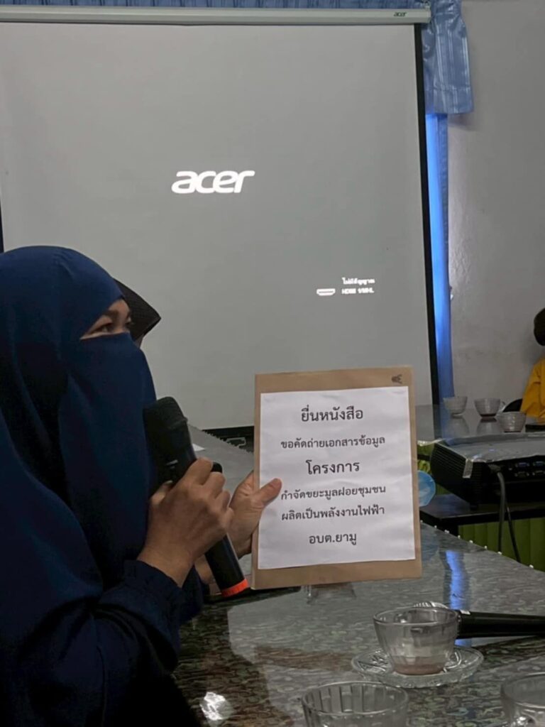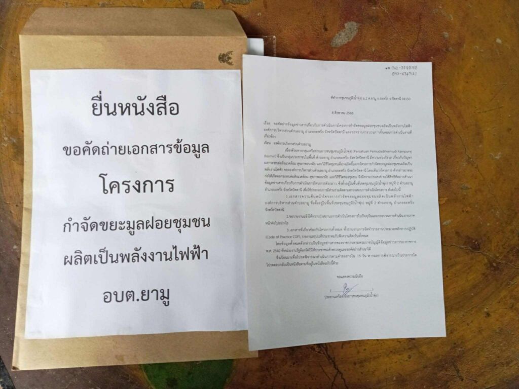 เครือข่าย​รักษ์ยามูส่งหนังสือ​ขอข้อมูล​โครงการ​โรงไฟฟ้า​ขยะตำบลยามู ด้านนายก อบต.ยามู รับให้ข้อมูลได้บางส่วนเกรงกระทบ​บุคคล​ที่สาม