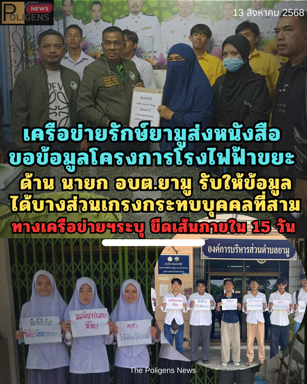 #ข่าว #สิ่งแวดล้อม #เครือข่ายรักษ์ยามู #คัดค้าน #โครงการโรงไฟฟ้าขยะ #ThePoligensNews