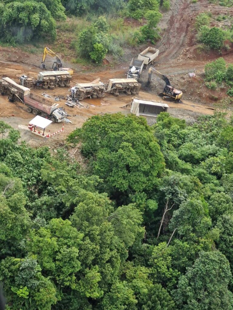 จากเหตุการณ์ เมื่อ 21 ส.ค.68 เวลา 12.50 เกิดเหตุลอบเผาเครื่องจักรของ บ.เหมืองแร่ บ.บูยง ม.3 ต.ช้างเผือก อ.จะแนะ จ.นราธิวาส จากการบินลาดตระเวนดูพื้นที่เกิดเหตุ ฯ ตรวจพบความเสียหายขั้นต้นดังนี้