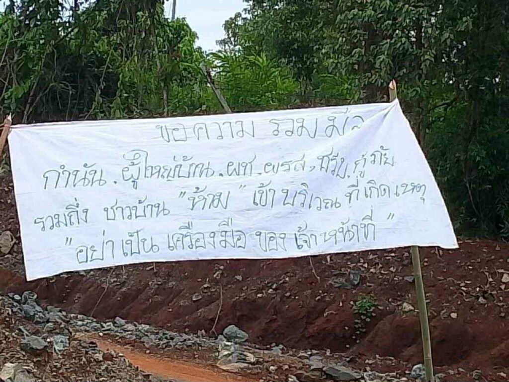 โดยพบป้ายผ้า 3 ผืน ถูกแขวนไว้ ทางขึ้นเขา ไม่ไกลจากจุดเกิดเหตุลอบวางเพลิง มีข้อความดังนี้ -