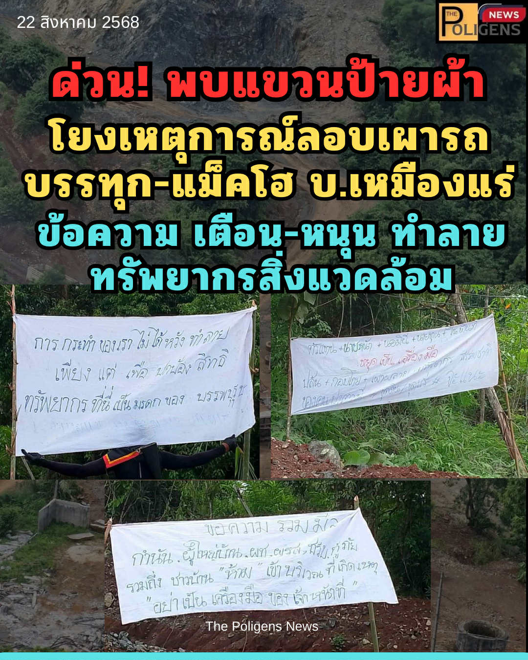 เมื่อ 22 ส.ค. 68 ได้รับรายงานจากประชาชนในพื้นที่ว่า เกิดเหตุ พบแขวนป้ายผ้า “ ขอความ ร่วมมือ ” เตือน “ ในพื้นที่ ม.6 ต.ช้างเผือก อ.จะแนะ จ.นราธิวาส คาดเชื่อมโยงเหตุการณ์ เผารถบรรทุก-แม็คโฮ ของบริษัทเหมืองแร่ในพื้นที่ อ.จะแนะ เมื่อวานที่ผ่านมา