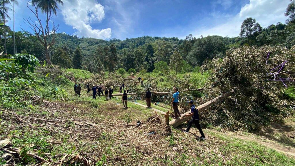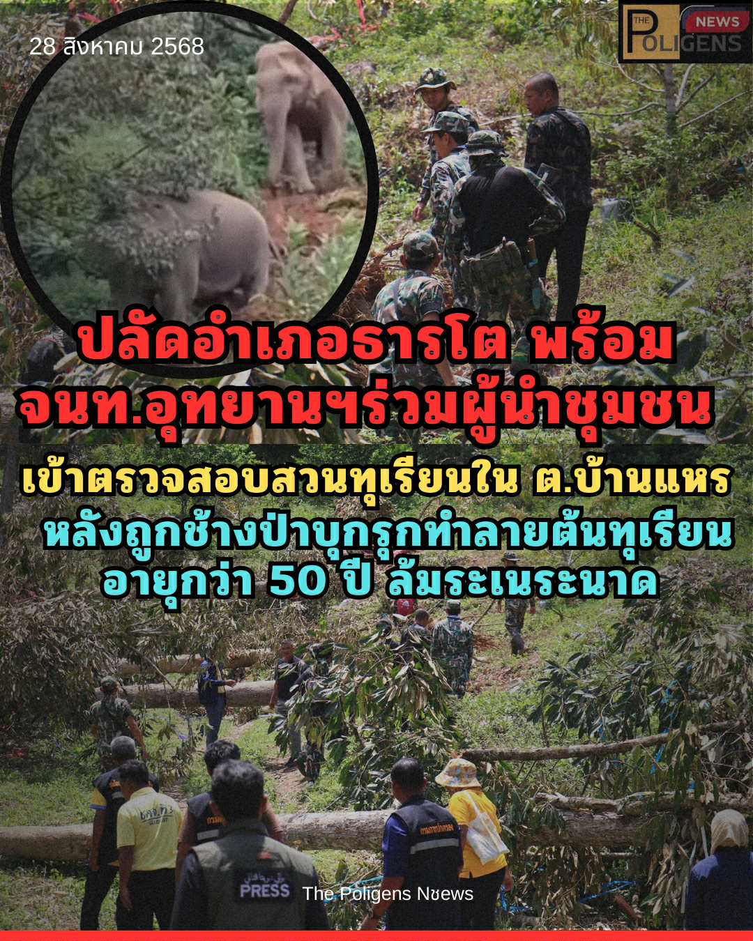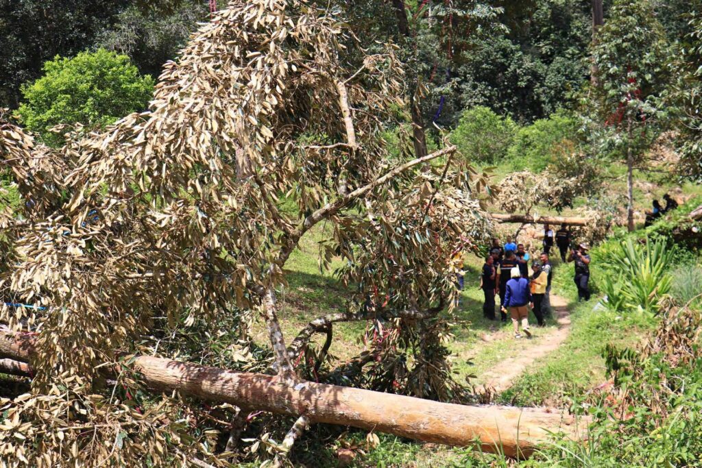 ปลัดอำเภอธารโต พร้อม จนท.อุทยานแห่งชาติบางลาง ร่วมผู้นำชุมชน เข้าตรวจสอบสวนทุเรียนใน ต.บ้านแหร อ.ธารโต จ.ยะลา หลังถูกช้างป่าบุกรุกทำลายต้นทุเรียนอายุกว่า 50 ปี