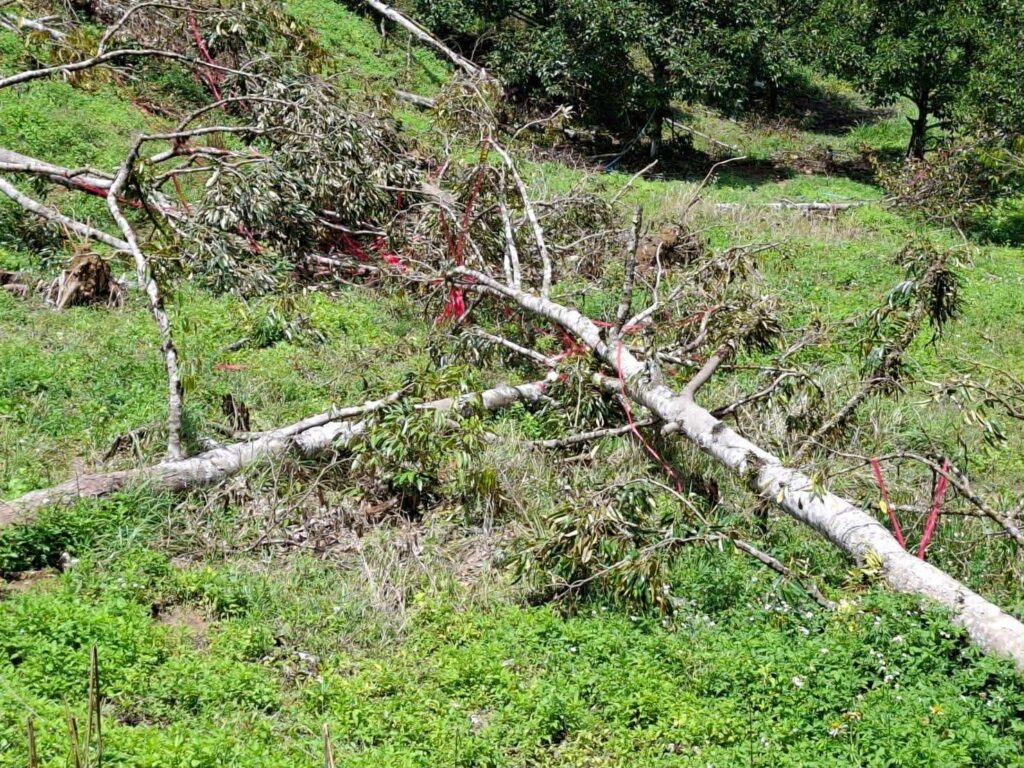 เมื่อวันที่ 28 สิงหาคม 2568 นายจุรินทร์ มะหมัด ปลัดอำเภอธารโต จ.ยะลา พร้อมด้วย นายธีระพล สุขเกษม นักวิชาการป่าไม้ ประจำอุทยานแห่งชาติบางลาง จ.ยะลา และเจ้าหน้าที่อุทยานฯ กำนัน ผู้ใหญ่บ้าน และเจ้าของสวนทุเรียน ได้เดินทางเข้าไปตรวจดูสภาพความเสียหายของต้นทุเรียนหมอนทอง อายุประมาณ 40-50 ปี จำนวน 12 ต้น ที่หมู่ 4 บ้านปูโล๊ะสะนีแย ต.บ้านแหร อ.ธารโต จ.ยะลา ซึ่งได้ถูกช้างป่าบุกเข้ามาทำลาย ใช้งาดันต้นทุเรียนขนาดใหญ่ทั้ง 12 ต้น ล้มระเนระนาด ขวางเส้นทางเข้าสวน