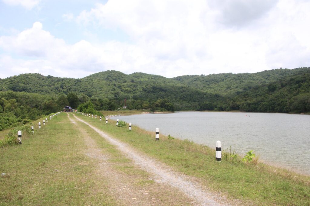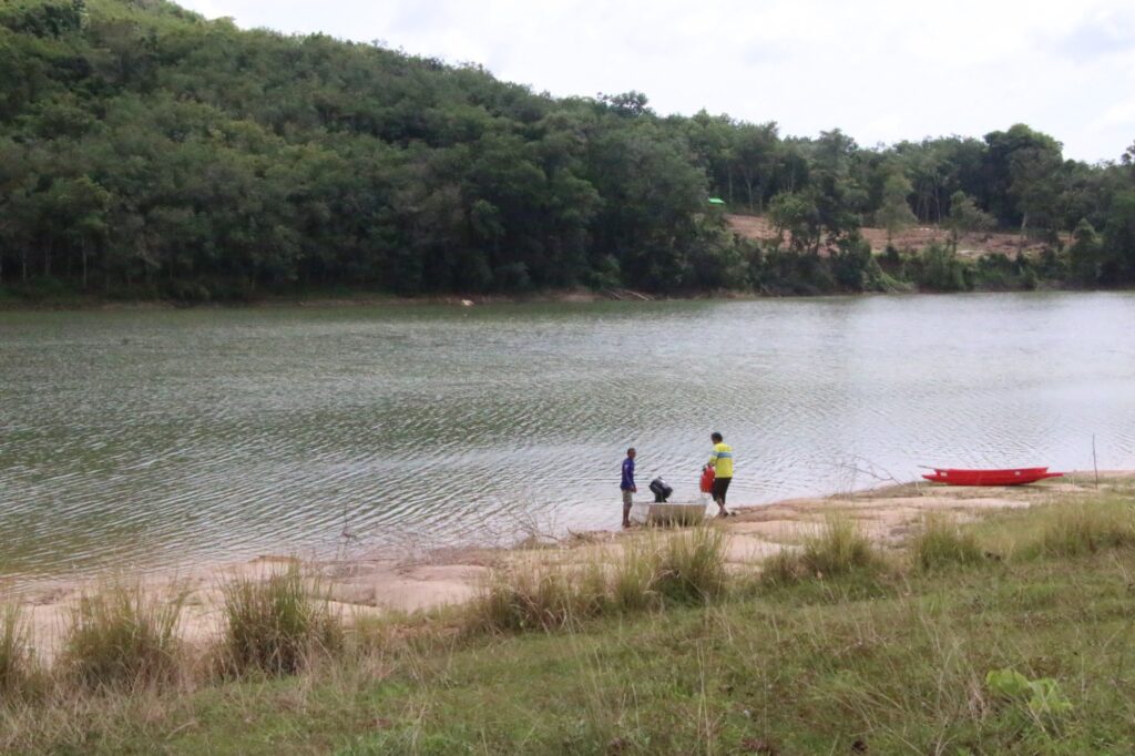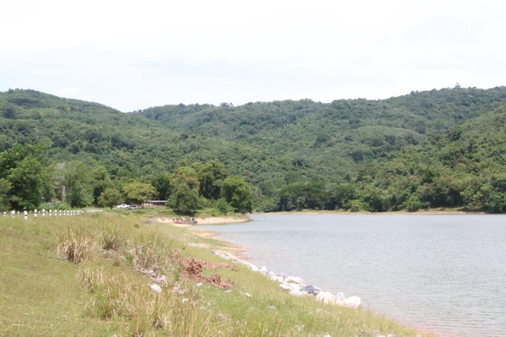 อ่างเก็บน้ำ ถ้าดูเผินๆก็ไม่มีอะไร แต่เข้ามาดูแล้ว ลึกๆ ที่นี่ มีหลากหลายมาก มันเป็นพื้นที่ยาว เป็นเนิน หลบบ้าง สำหรับฟาร์มตัวอย่าง มีพื้นที่ข้างบนนี้ และด้านล่างด้วย ที่จะดูในเรื่องของการปลูกพืชยืนต้น