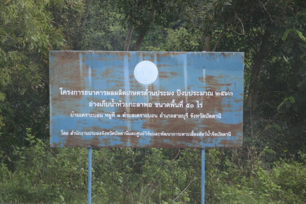 นายสมพร จันทร์ศรี ผู้ใหญ่บ้าน ม.1 ต.เตราะบอน อ.สายบุรี จ.ปัตตานี กล่าวว่า สำหรับ หมู่ 1ของเราก็มีโครงการพระราชดำริ ก็คือโครงการอ่างเก็บน้ำลำห้วยกะลาพอ ส่วนด้านล่างก็จะมีฝายเก็บน้ำห้วยกะลาพอ