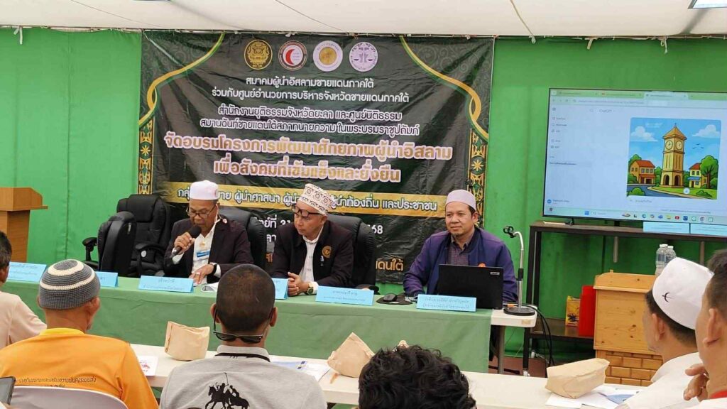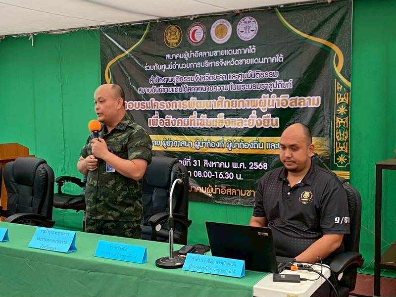 เมื่อวันอาทิตย์ที่ 31 สิงหาคม 2568 เวลา 08:30-16:30 น. สมาคมผู้นำอิสลามชายแดนภาคใต้ ร่วมกับศูนย์อำนวยการบริหารจังหวัดชายแดนภาคใต้ สำนักงานยุติธรรมจังหวัดยะลาและศูนย์นิติธรรมสมานฉันท์ชายแดนใต้สภาทนายความในพระบรมราชูปถัมภ์