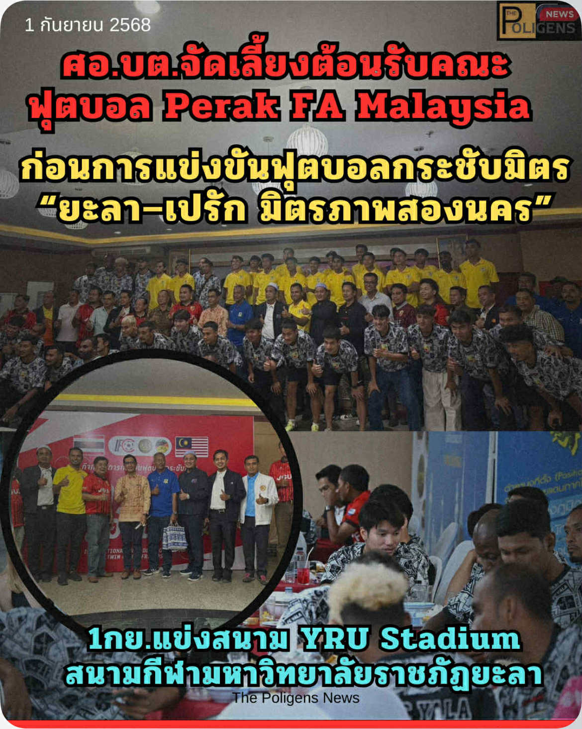 #ข่าว #ศอบต #เลี้ยงต้อนรับนักฟุตบอล #เปรักเอฟเอ #มาเลเซีย #สโมสรยะลาเอฟซี #ThePoligensNews